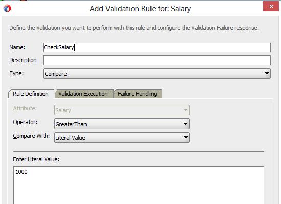 1- in EO Business rule set validation on Salary to compare Salary greeter than 1000$ .